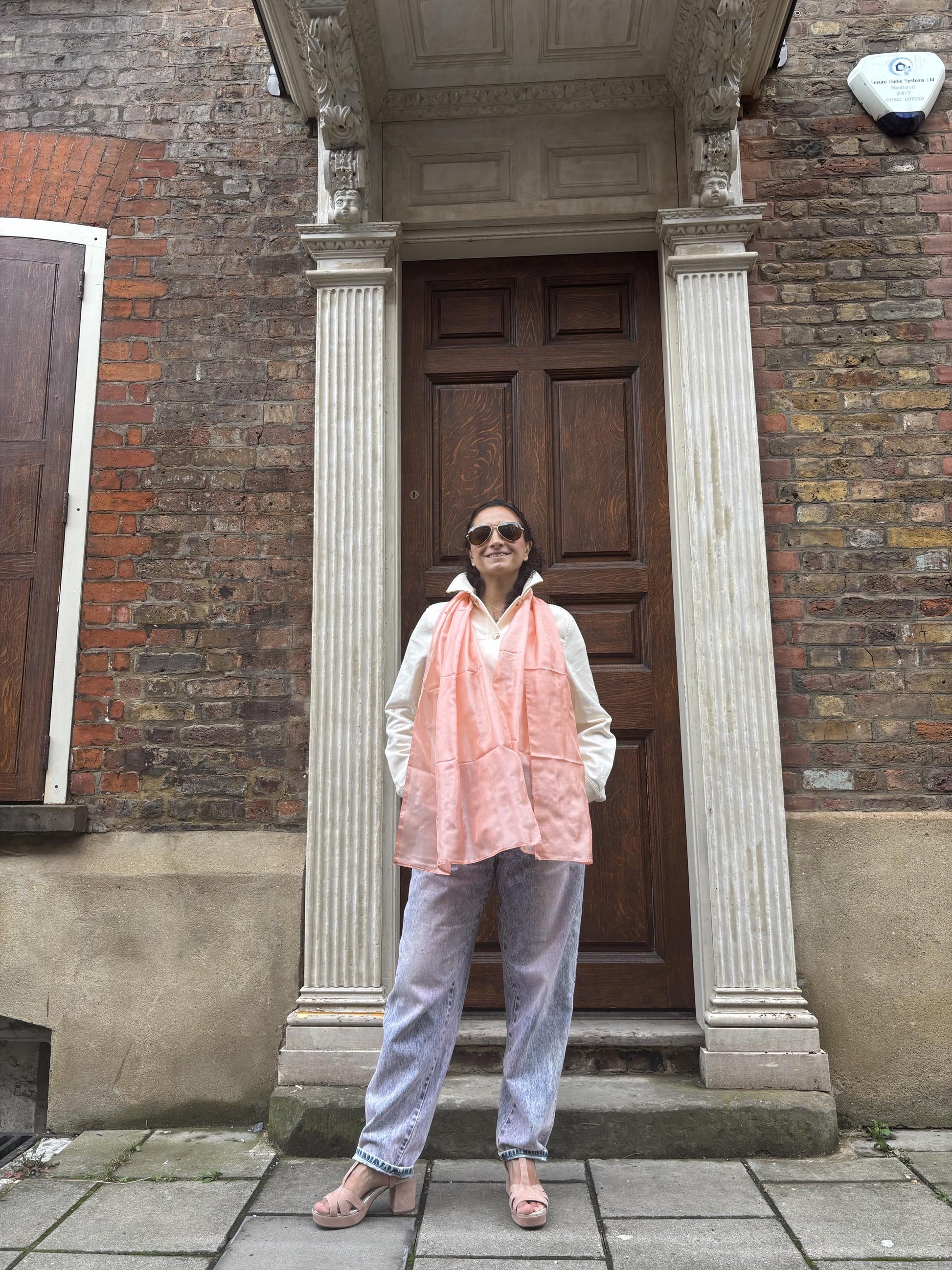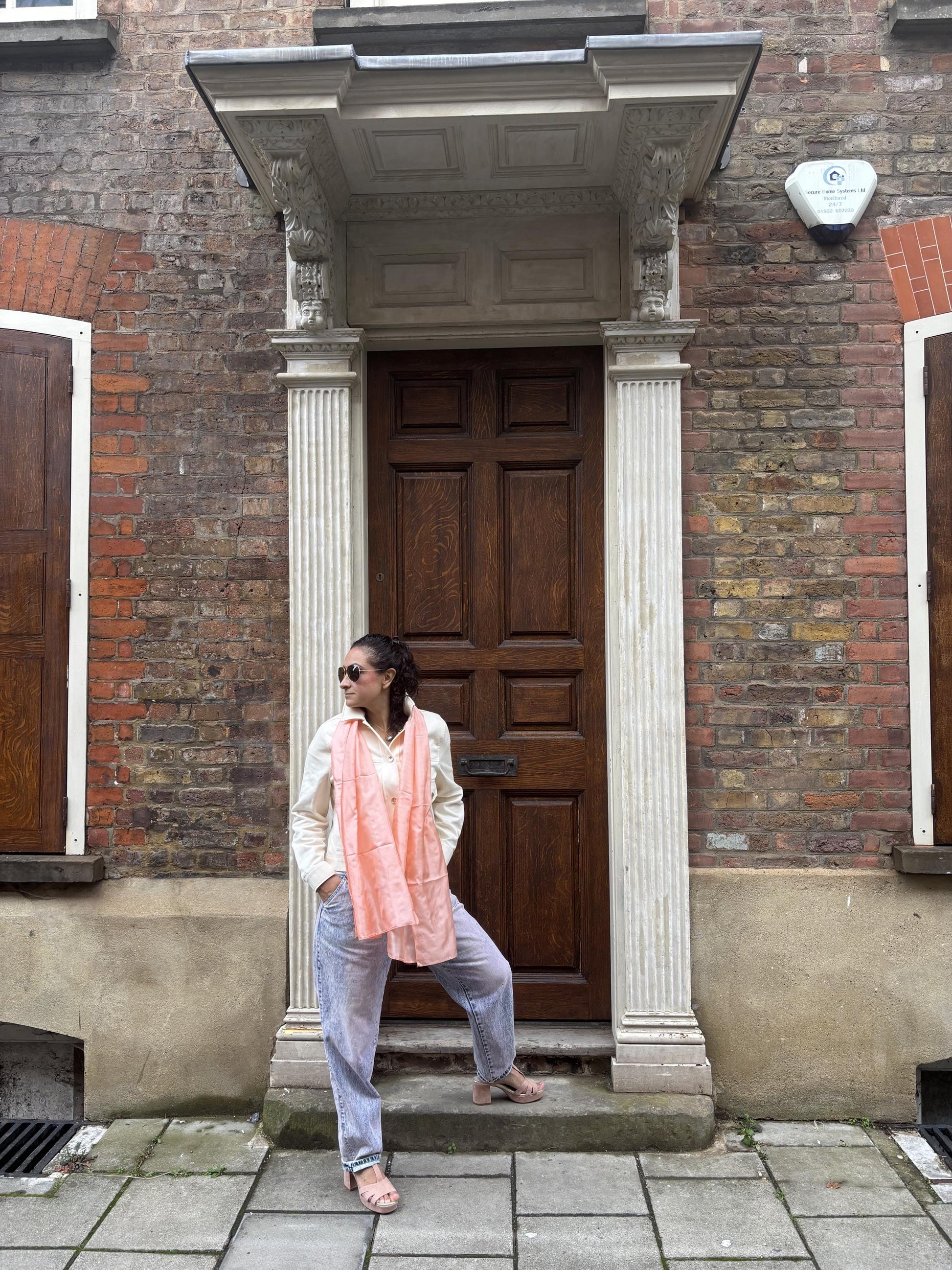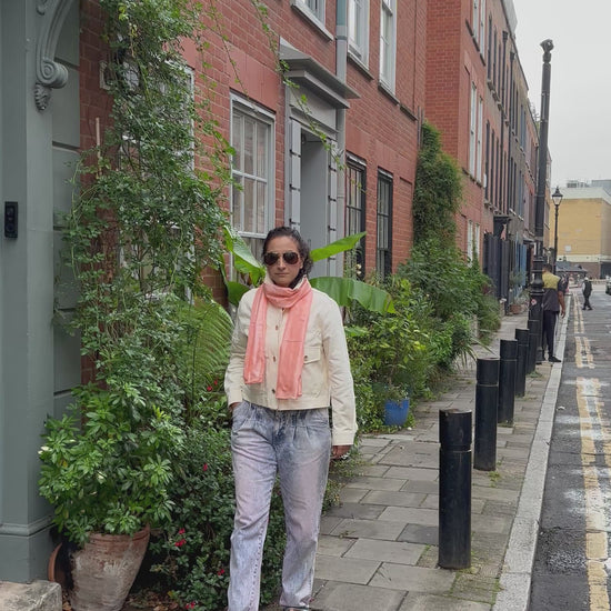 Carlotta Peach from Liz Tena, a scarf that balances modern sophistication with gentle warmth. Crafted from 100% silk, its soft peach shade brings a radiant pop of colour to any outfit, elevating casual or refined ensembles with ease. Light, versatile, and endlessly wearable, Carlotta Peach is a wardrobe essential for those who love timeless style infused with subtle, glowing colour.