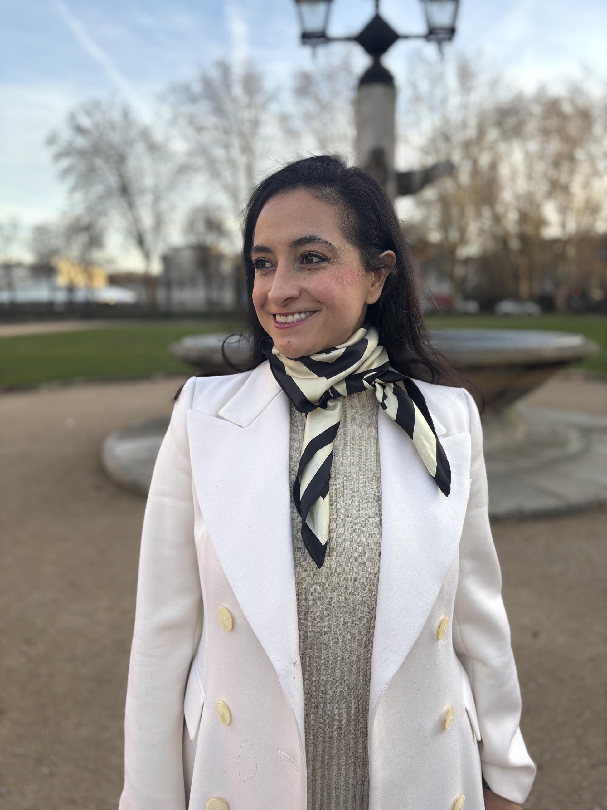 Perfect as a neck scarf, hair wrap, bandana, headscarf, or even tied to a bag for an extra accent. Whether you’re dressing up a casual outfit or adding a refined detail to your wardrobe, this scarf is a standout accessory.