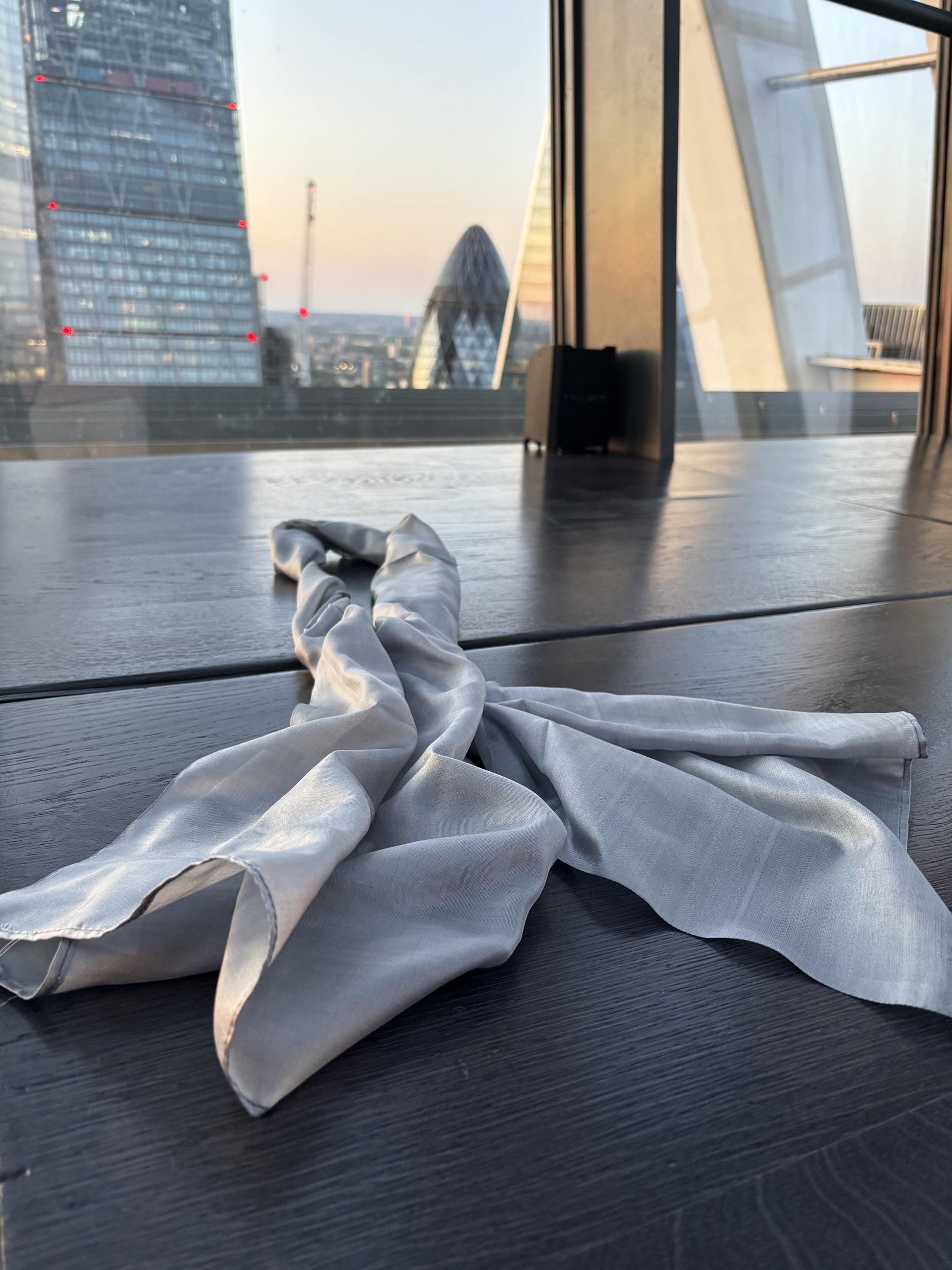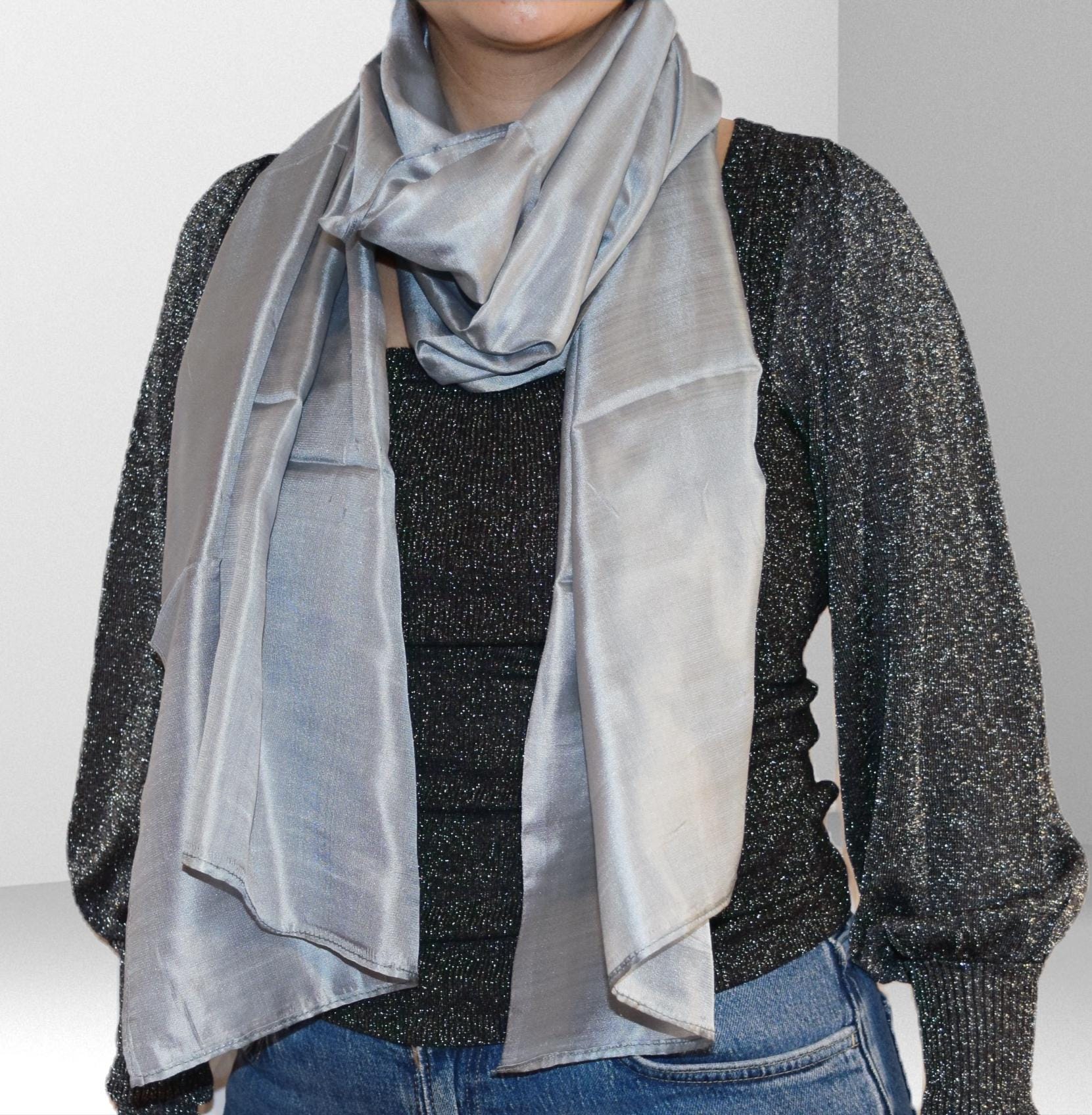 Carlotta Grey Carlotta Grey is a silk scarf that balances subtlety and style. The gentle grey hue evokes calm and refinement, while its soft texture adds a touch of luxury to every ensemble. Perfect for layering, draping, or tying, Carlotta Grey is a versatile piece that elevates your wardrobe with ease.