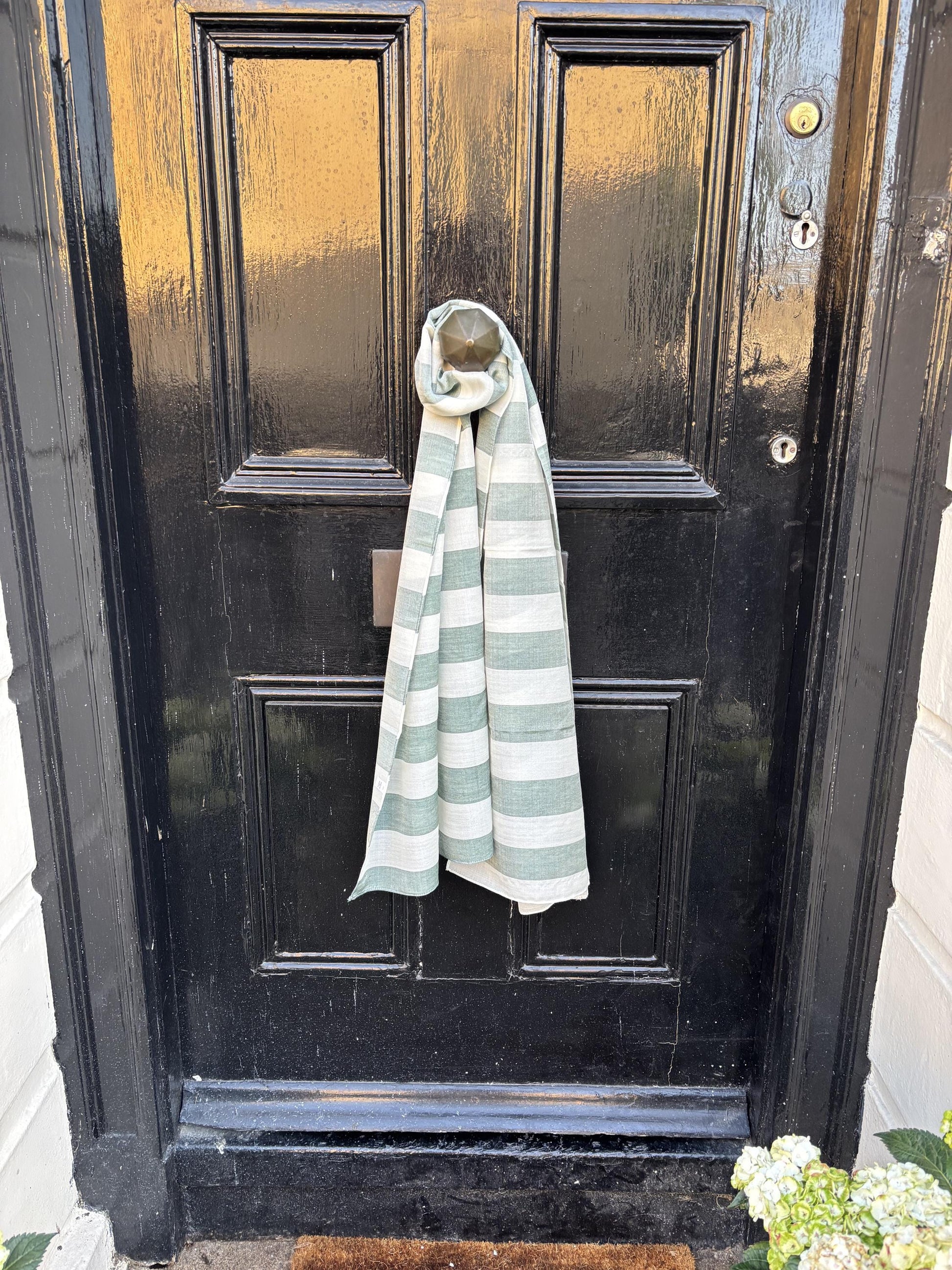 Fresh and full of life! The Leo Green & White Stripes Scarf brings a vibrant twist to cool days. Crafted from 20% silk and 80% wool, it’s soft yet structured, with a crisp stripe pattern that brightens any outfit. The lively green and clean white make it ideal for adding a pop of colour to your wardrobe, whether you’re heading to brunch or strolling through the city.